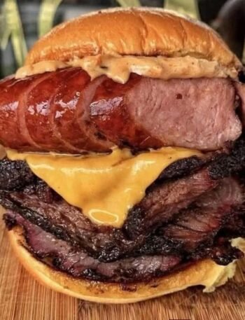 This sandwich isn’t just food… it’s a full-on experience. Layers of smoky meat, juicy sausage, melted cheese, and a soft …