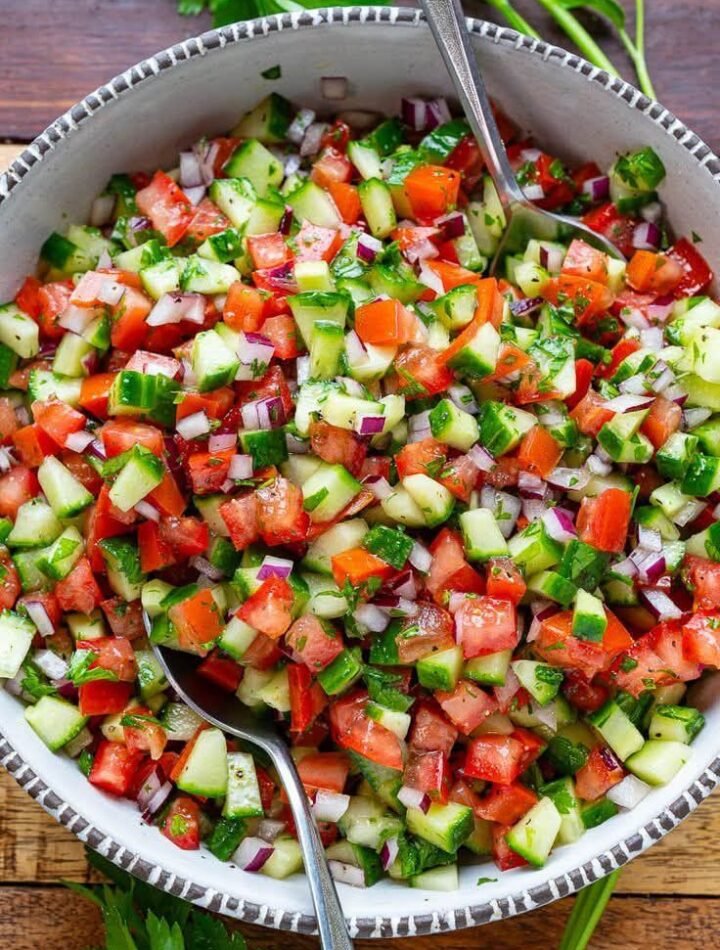 This Mediterranean chopped salad is fresh, colorful, and bursting with flavor. Everything is finely chopped so you get a perfect bite every time. It’s light, healthy, and ready in 10 minutes.