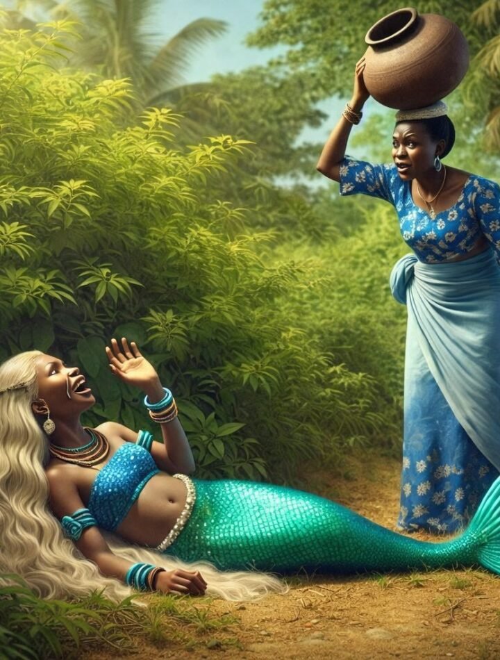With all the strength she had, Amara dragged the mermaid through the bushes, away from the path, deeper into a hidden area near the riverbank where no one would easily find them.