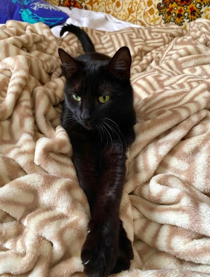 There are moments in life that feel like a quiet embrace—soft, comforting, and impossible to rush. This image captures one of those moments, wrapped delicately in warmth, where a black cat rests like a living piece of midnight against a sea of softness.